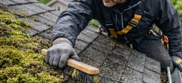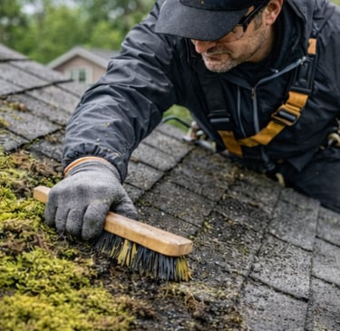 We carefully remove moss by hand using specialized roof brushes, ensuring a safe and thorough cleaning that protects your shingles. After the moss is removed, we apply a treatment to help prevent it from growing back.